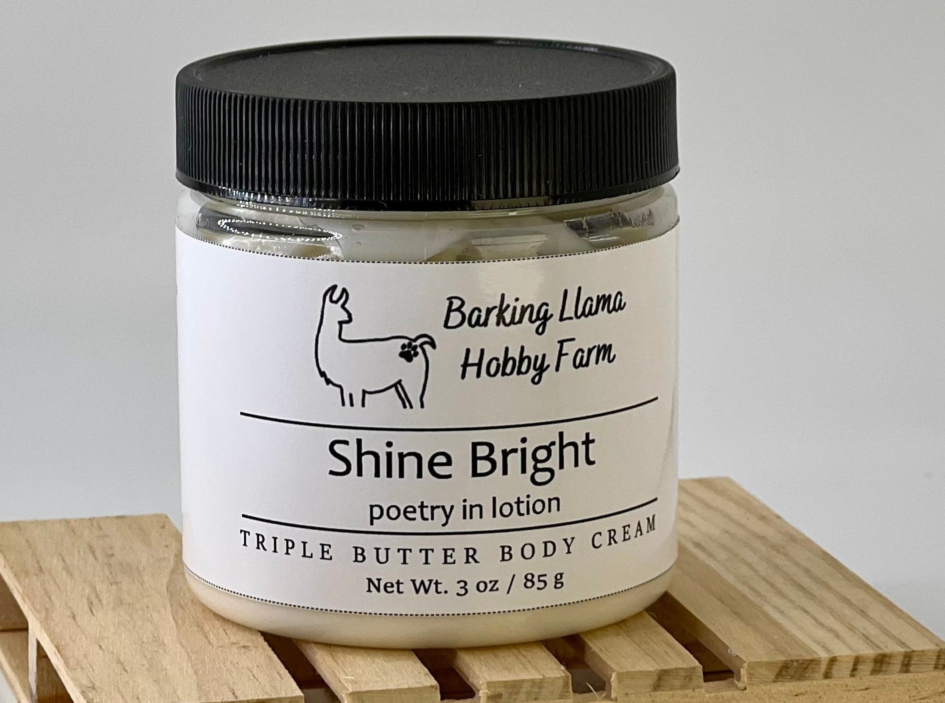 Body creams may not look exactly like the photograph, but they are pretty darn close because I don't use any colorants in lotions. And since I'm a one person show with a real job and a farm, there are only so many hours in a day I can work on creating...so if your favorite body cream isn't back in stock yet, just give me a heads-up so I can add it to the list.
