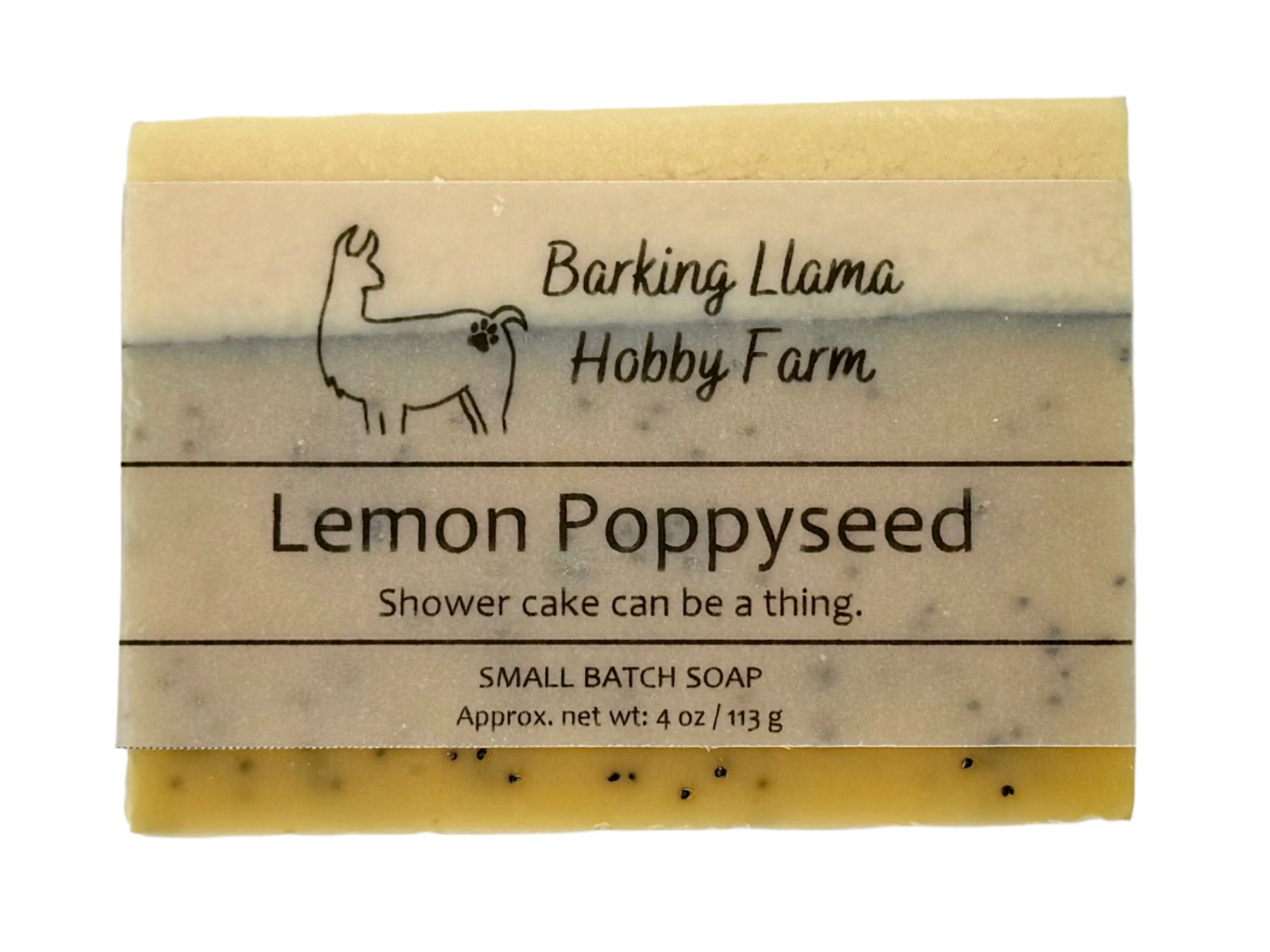 Lard, water, coconut oil, cocoa butter, lye, olive oil, apricot kernel oil, fragrance, castor oil, sugar, sodium lactate, poppyseeds, mica, titanium dioxide, iron oxide, activated charcoal, tussah silk fiber