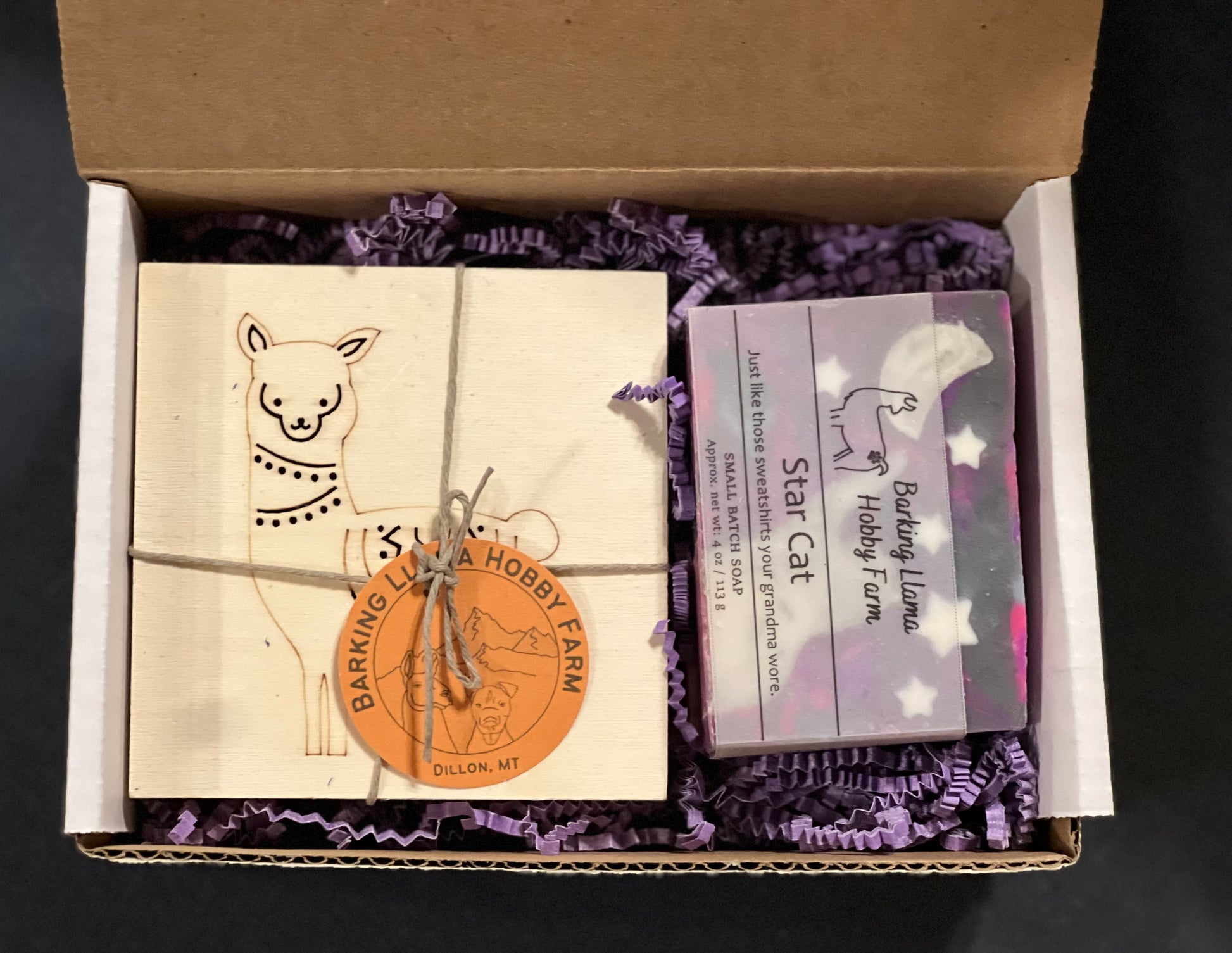 Small wooden box that can hold 2 soaps or a soap and two shower fizzes. Don't worry - if you select more products than can fit in this box, I'll include them all in the shipping box. Plus I'll make it look extra cute, I promise.