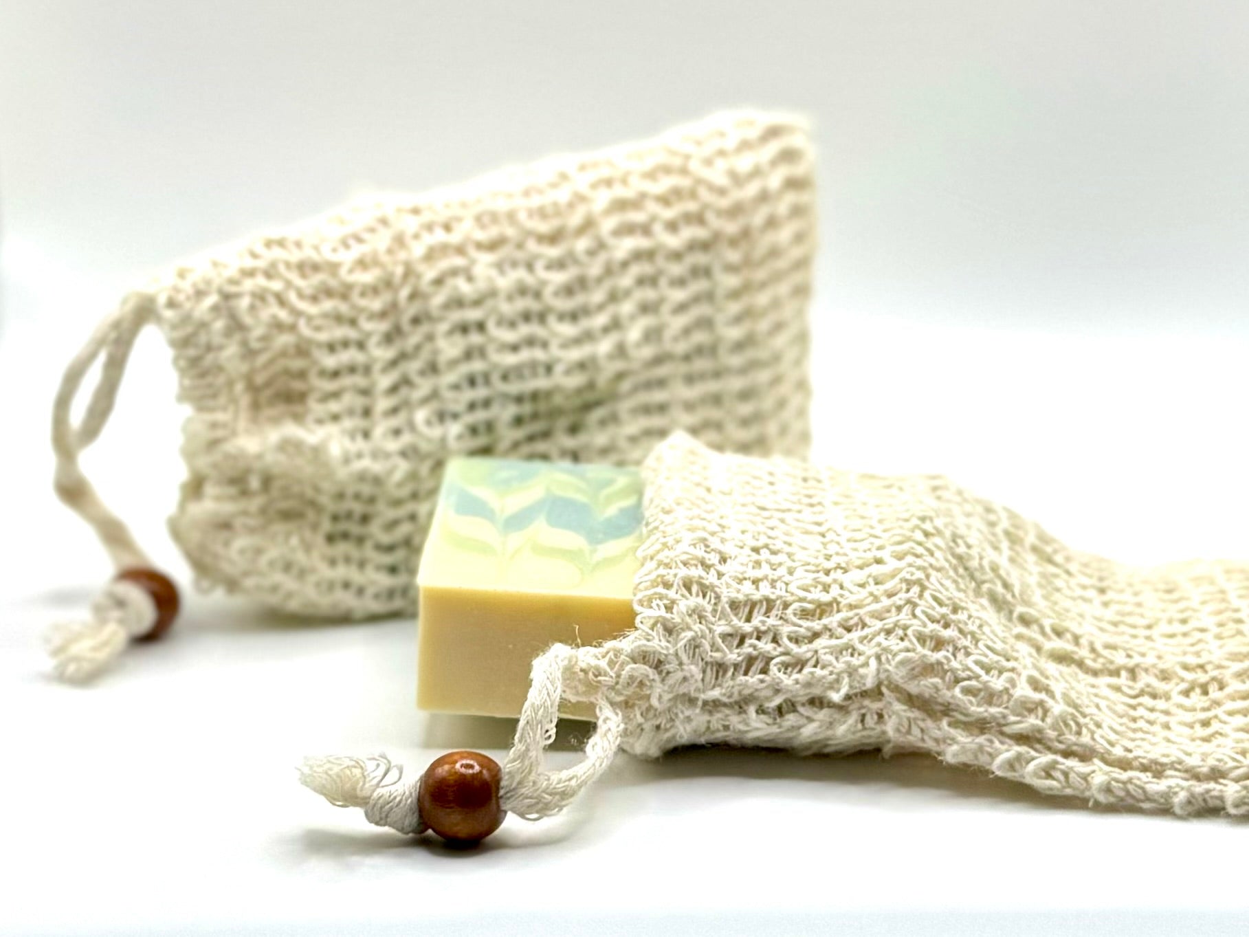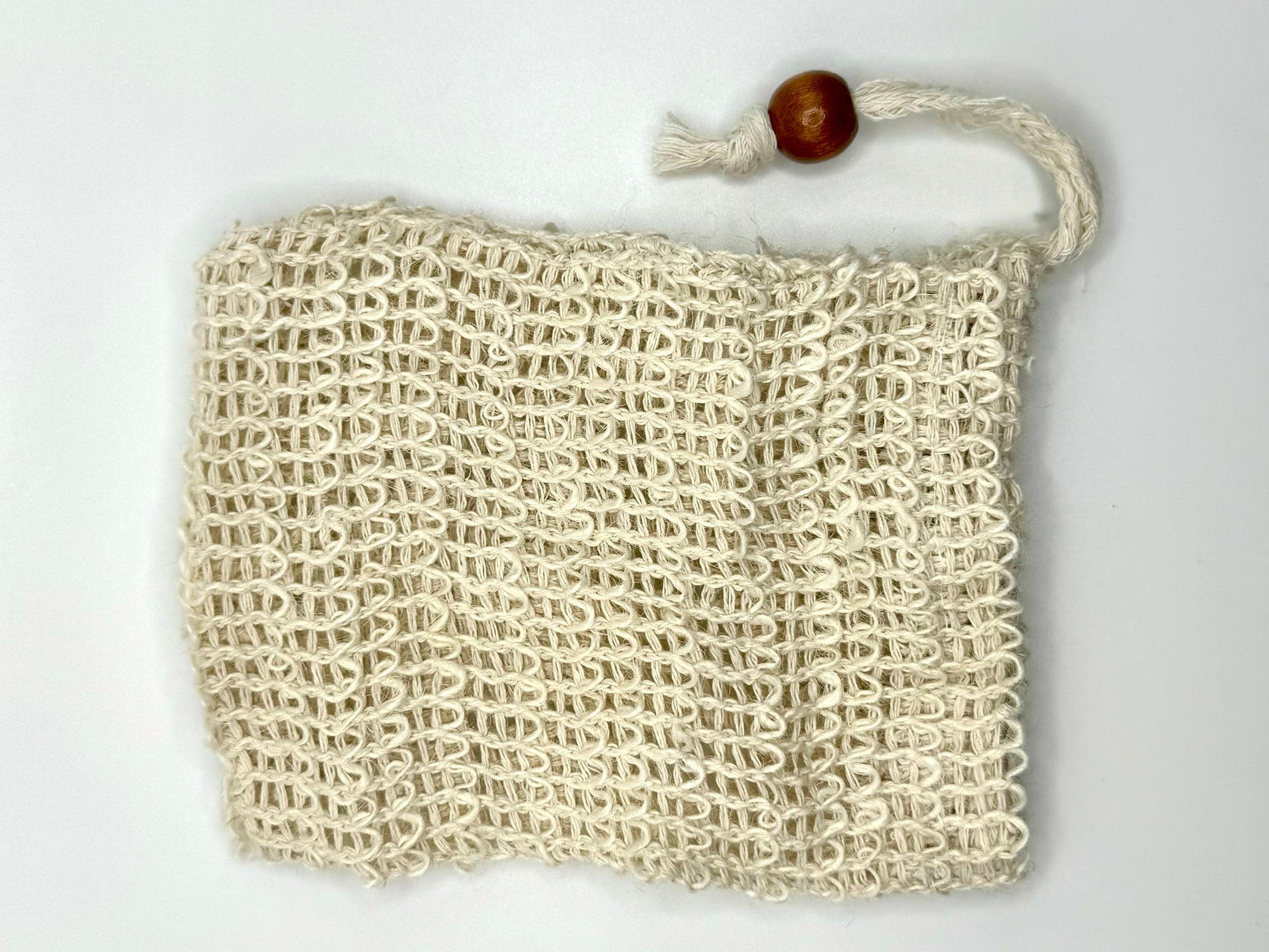 Hangable bag for your handmade soap or shower fizzes. Add a full bar or your odds-and-ends and scrub away. Or add your shower fizz and hang from your shower handle. Eco-friendly and made with plant fiber. Soap not included.