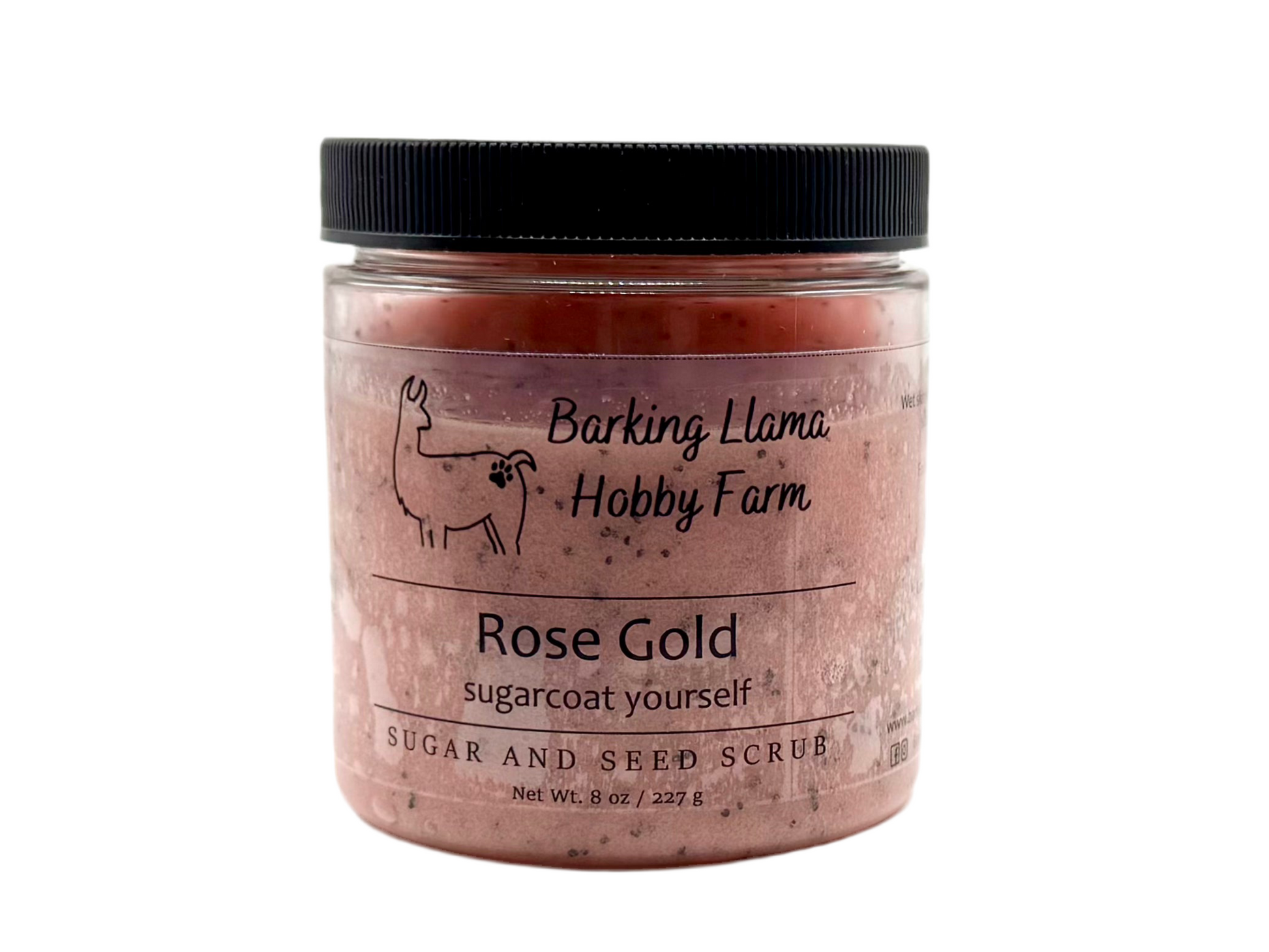 sugar, rice bran oil, grapeseed oil, shea butter, emulsifying wax NF, cetyl alcohol, stearic acid, poppyseeds, fragrance, phenoxyethanol (and) caprylyl glycol, and mica