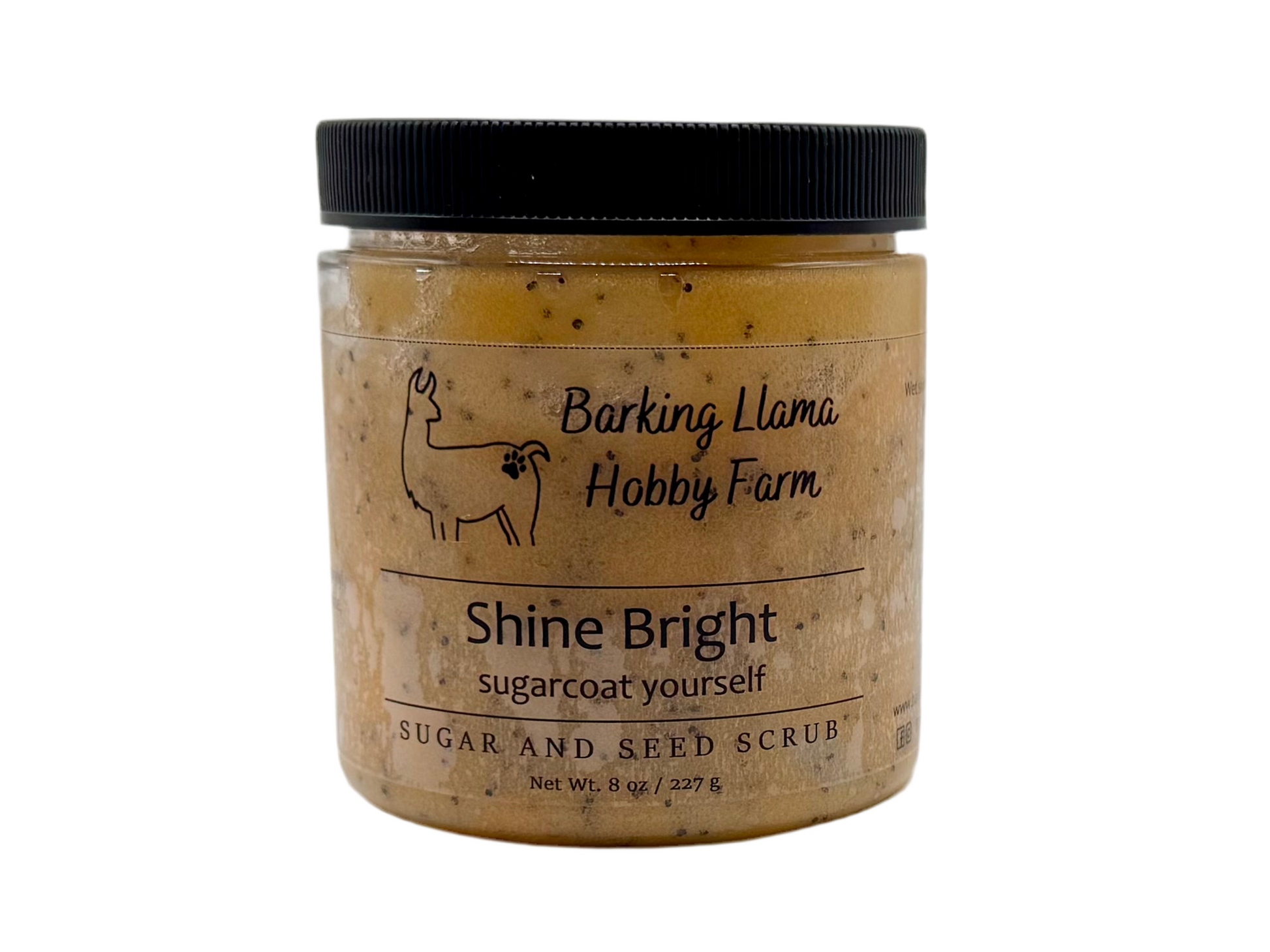 sugar, rice bran oil, grapeseed oil, shea butter, emulsifying wax NF, cetyl alcohol, stearic acid, poppyseeds, fragrance, phenoxyethanol (and) caprylyl glycol, and mica